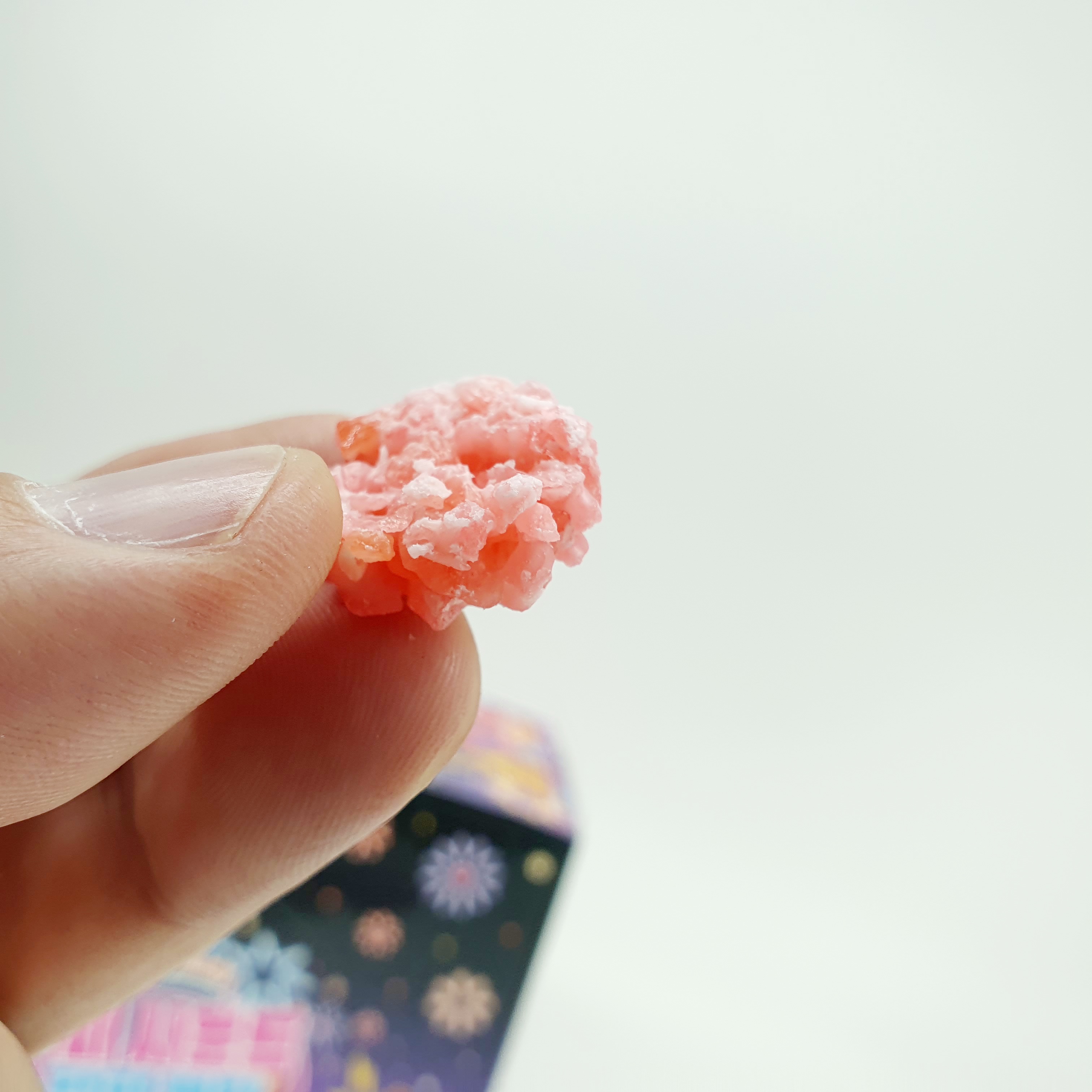 봉지를 뜯으면 핑크빛의 오돌오돌한 캔디 덩어리가 들어 있는데,